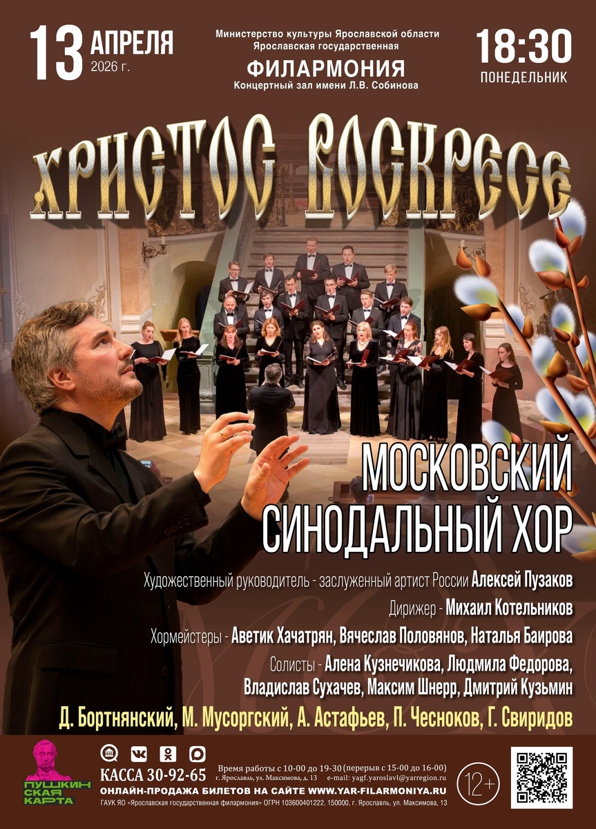 Именно такую программу представит один из старейших профессиональных хоров России -Московский Синодальный хор 13 апреля 2026 г. Прозвучат шедевры русской духовной музыки - от торжественного Бортнянского до светлой грусти Свиридова. Венцом концерта станут любимые народные мелодии, включая легендарный «Вечерний звон» в обработке Свешникова. Разделите радость музыки с нами! Мы хотим, чтобы как можно больше людей смогли прикоснуться к великой духовной музыке, поэтому подготовили для вас пасхальный подарок - скидку 30% на билеты. https://yar-filarmoniya.ru/afisha/view.php?af_id=6012