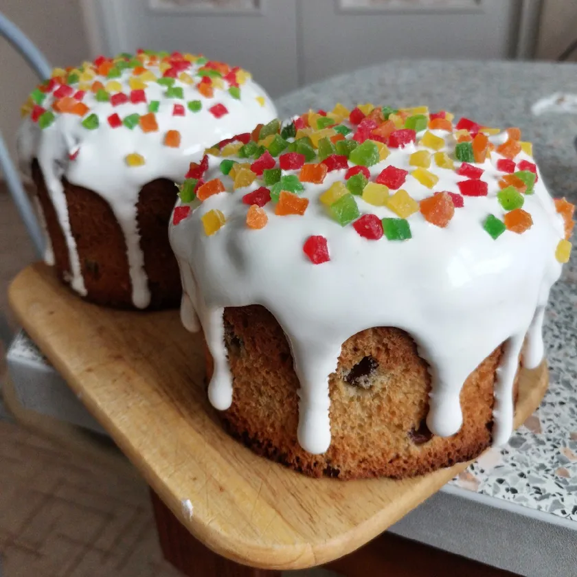 Этот кулич делается на ночной заготовке, на самом деле времени активной готовки занимает немного. Тесто подходит просто великолепно. Получился мягким, рыхлым и ароматным. Получается 2 кулича примерно 9×9 см. Куличи в хлебопечке: как у бабушки, только проще готовить Пасха. Куличи на дрожжах Что можно приготовить в мультипекаре? 40 проверенных идей Пасха. Куличи без дрожжей Несладкие пироги в мультиварке: рецепты на каждый день Блюда для мультиварки Ингредиенты Заготовка Дополнительно 1. В теплое молоко добавить дрожжи и перемешать. 2. В отдельную миску выложить размягченное (не растопленное) масло, яйцо, желток и сахар, перемешать венчиком до однородного состояния. 3. В массу добавить дрожжевую смесь и подготовленный изюм (вымытый и просушенный), перемешать. Накрыть миску пленкой и оставить на столе на 8-12 часов. 4. Утром открыть заготовку, добавить коньяк, соль, ванильный сахар и просеянную муку, тщательно перемешать. 5. Полученное тесто вымешать руками в миске в течение 10 минут. До