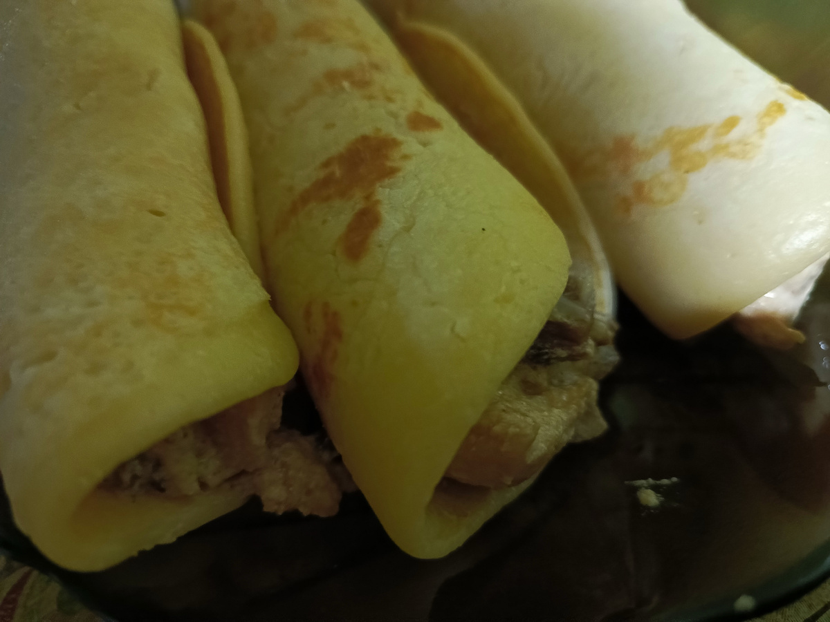 Начинку выкладываем в блины, с добавлением тертого сыра.