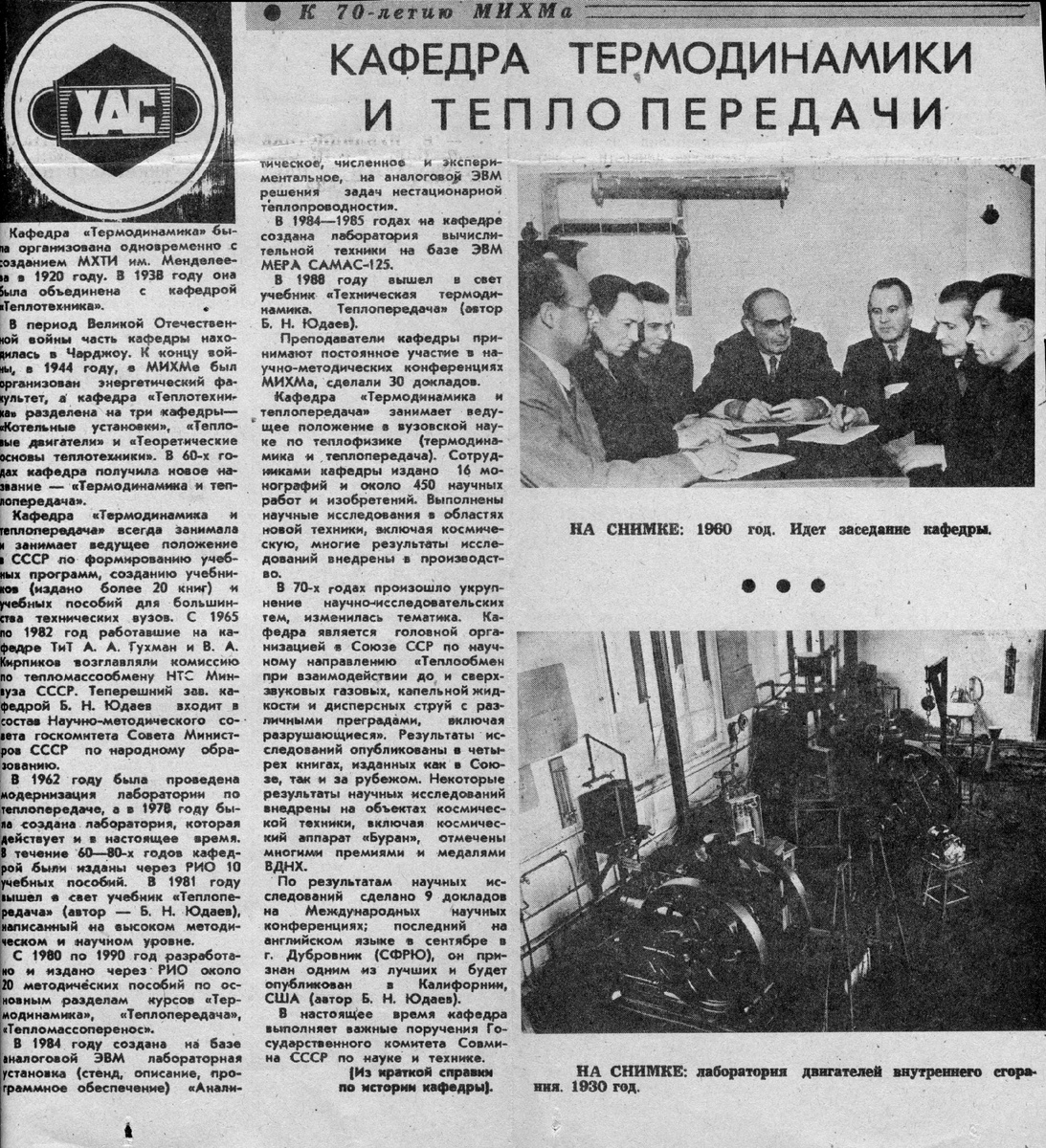 Кафедра «Термодинамика и теплопередача» всегда занимала и занимает ведущее положение в СССР по формированию учебных программ , созданию учебников (издано более 20 книг) и учебных пособий для большинства технических вузов. С 1965 по 1982 год работавшие на кафедре ТиТ А. А. Гухман и В. А. Кирпиков возглавляли комиссию по тепломассообмену НТС Минвуза СССР. Теперешний зав. кафедрой Б. Н. Юдаев входит в состав Научно-методического совета госкомитета Совета Министров СССР по на