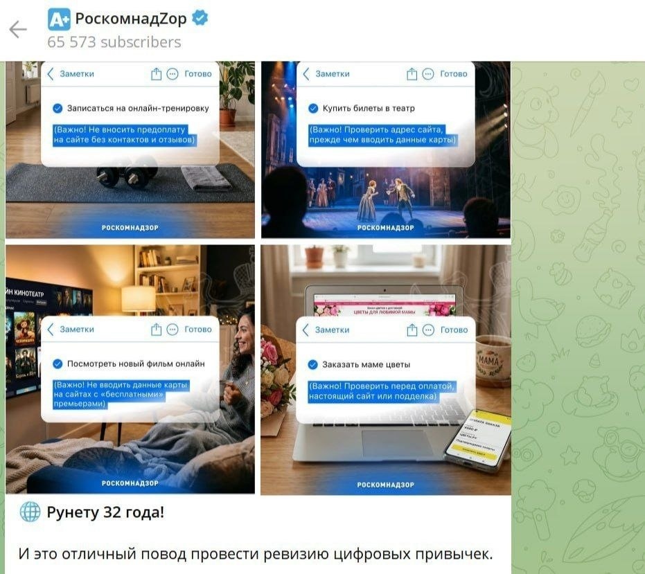 Роскомнадзор вчера поздравил пользователей с 32-летием Рунета прямо в Telegram — платформе, к которой у ведомства регулярно возникают вопросы. В сообщении предложили «провести ревизию цифровых привычек» и напомнили о базовых правилах безопасности в сети. Сам День Рунета отмечался вчера, 7 апреля: в 1994-ом домен .ru был внесён в перечень InterNIC. Ирония в том, что поздравление прозвучало там, где цифровая реальность и регулирование пересекаются достаточно остро. 🤩 PRO: история продолжается