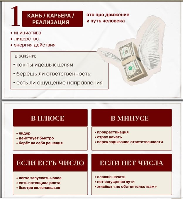 #практика@happy_family_way Захотелось тему 1 в дате, а точнее тему карьеры, реализации, инициативы, лидерства и энергии действия - разобрать подробнее. На фото скриншоты из обучения про 1, там можно увидеть, как развить эти качества при отсутствии единицы, и как раскрыть 1, если она есть (тем более если 1 несколько, кстати две единицы усиливают энергию, а 3 и 4 создают перекос, отследите, как это у вас проявляется), но эта энергия у вас пока не активна, там есть рекомендации по регулярным действиям, по усиливающим эту энергию цветам одежды и камням, по гармонизации сектора в доме/комнате с помощью разных элементов стихии, отвечающий за эти проявления. ❤️🔥Сформировала для вас фразы по Методу Легализации Правды для освобождения от того, что мешает вам активно двигаться в сторону вашей реализации. Найдите тихое уединенное место и проговорите фразы ниже, фокусируясь на ваших чувствах, эмоциях и ощущениях. Ну или просто прочтите, как можете, если обстоятельства не позволяют сделать э