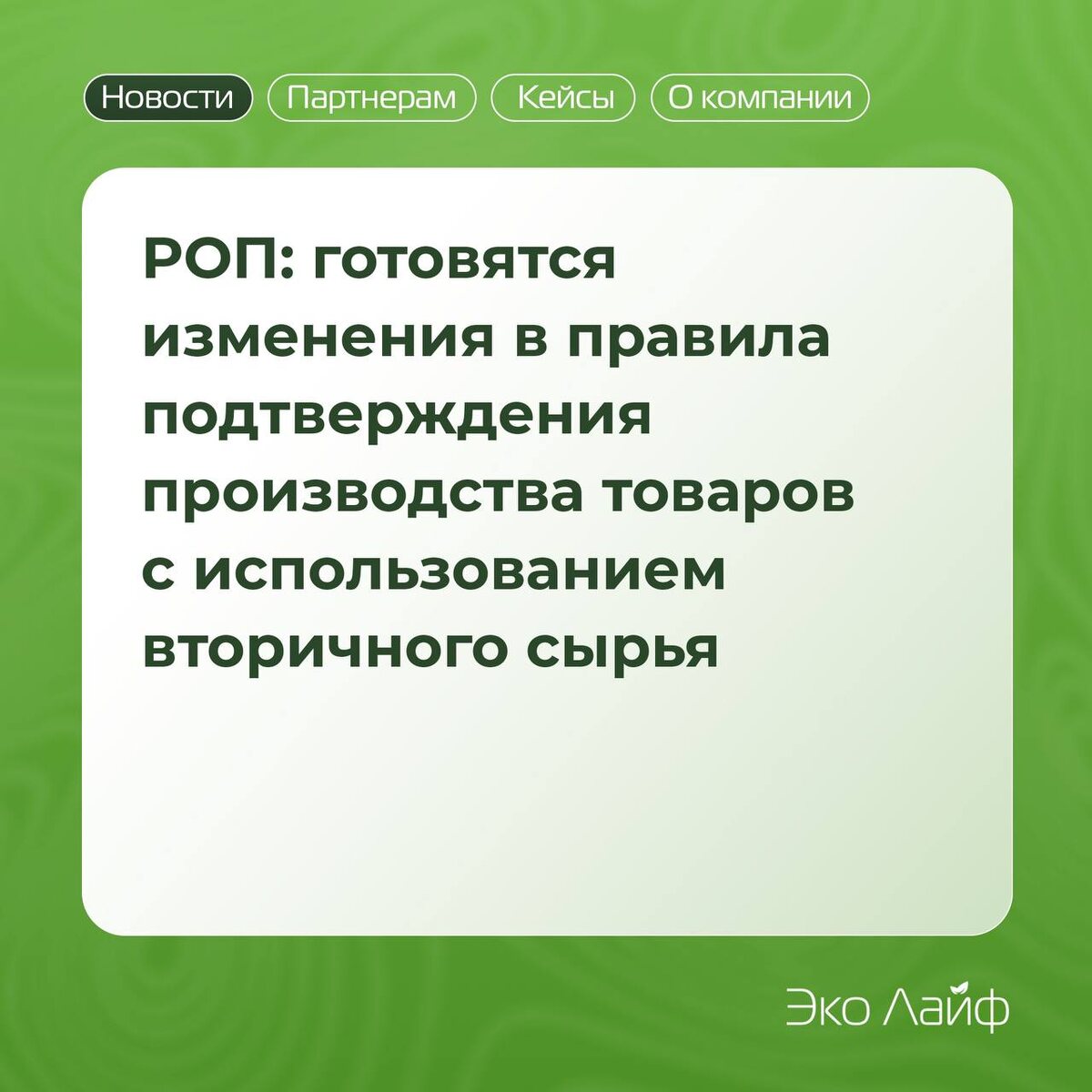РОП: готовятся изменения в правила подтверждения производства товаров с использованием вторсырья
