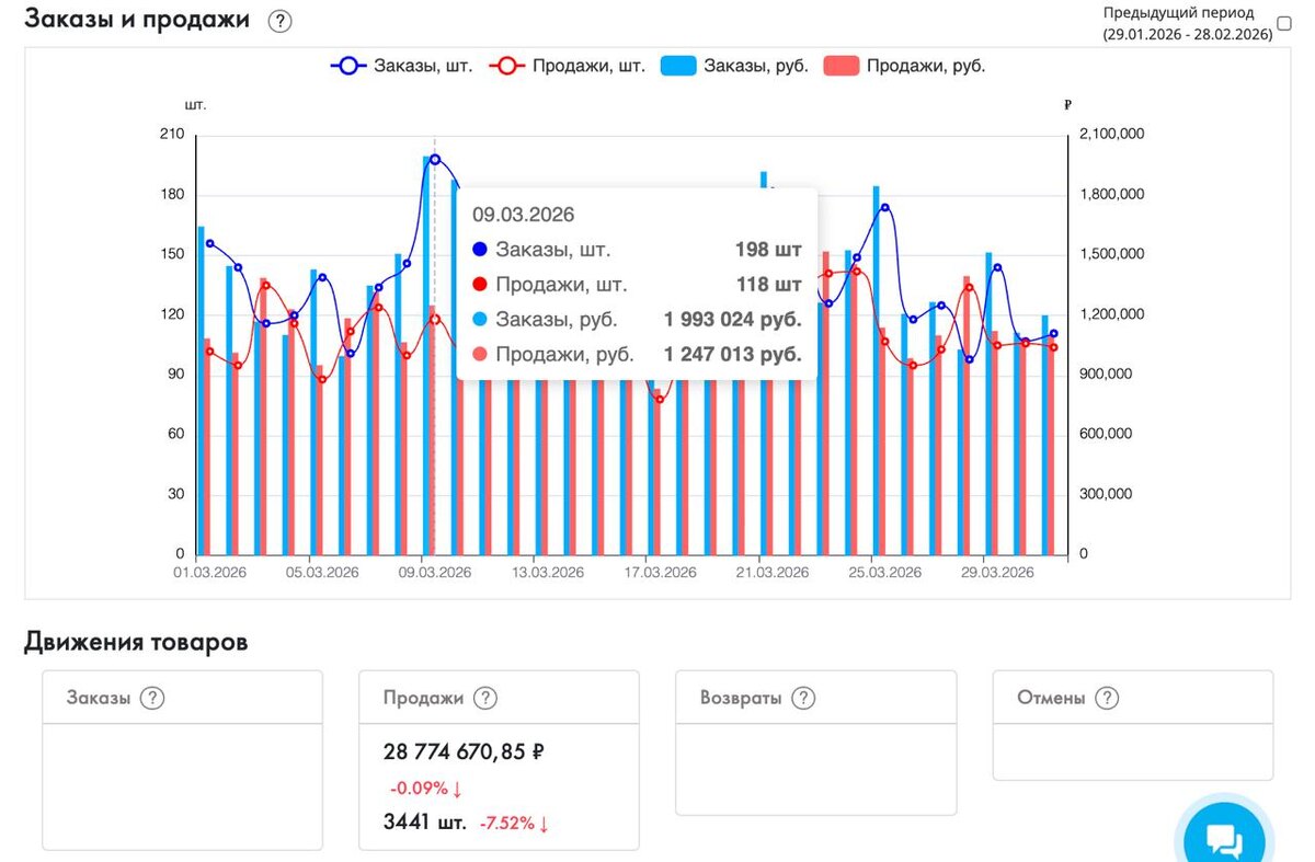 Больше 4300 единиц изделий продано. По количеству единиц план не выполняется. По деньгам тоже не до конца. Но план по маржинальной прибыли в абсолюте выполняется - и вот это ключевое. Можно продавать много и зарабатывать мало. Можно продавать меньше, но держать маржу - и это здоровый бизнес. Каналы: ВБ и Озон - основа. Яндекс.Маркет начинает работать по-настоящему, чувствуется рост. Команда небольшая, но слаженная. И всё больше задач забирают нейросети прямо сейчас, в операционке. Это ощущается физически: меньше людей, тот же или лучший результат. Впереди май. Для мебели это дно сезона - люди уходят на дачи. Трафик просядет, это факт. Подключаем дополнительные каналы, чтобы держать план. После мая пойдет вверх, и тогда уже новый трафик даст мультипликатор. Отдельно про себестоимость. Ставил цель минус 20% - сделали 18%. Без потери качества. Это три месяца работы с поставщиками, аукционы, пересмотр раскроя, оптимизация процессов. Горжусь командой. Каждый реально вложился. Цель вып