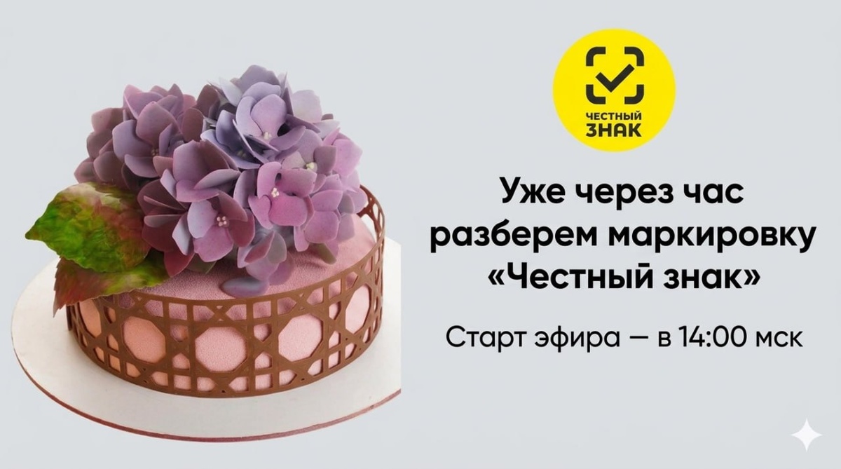 В 14:00 мск встречаемся на эфире, чтобы ответить на самые актуальные вопросы по маркировке: 💫Самозанятые: нужно ли вам вообще что-то менять в работе или закон вас не касается. 💫Торты на заказ vs полка в магазине: в какой момент обычный торт превращается в товар, который нельзя продавать без кода. 💫Работа с кофейнями: как теперь отдавать свои десерты на реализацию и какие документы с вас потребуют. 💫Расходы: какой минимум оборудования нужен (и нужно ли оно вам вообще), чтобы не тратить деньги впустую. 💫Продажа по кусочкам и весовые изделия: как маркировать то, что не имеет заводской упаковки. Приходите, чтобы точно понять, нужно ли срочно что-то менять или можно спокойно работать и дальше «как есть»