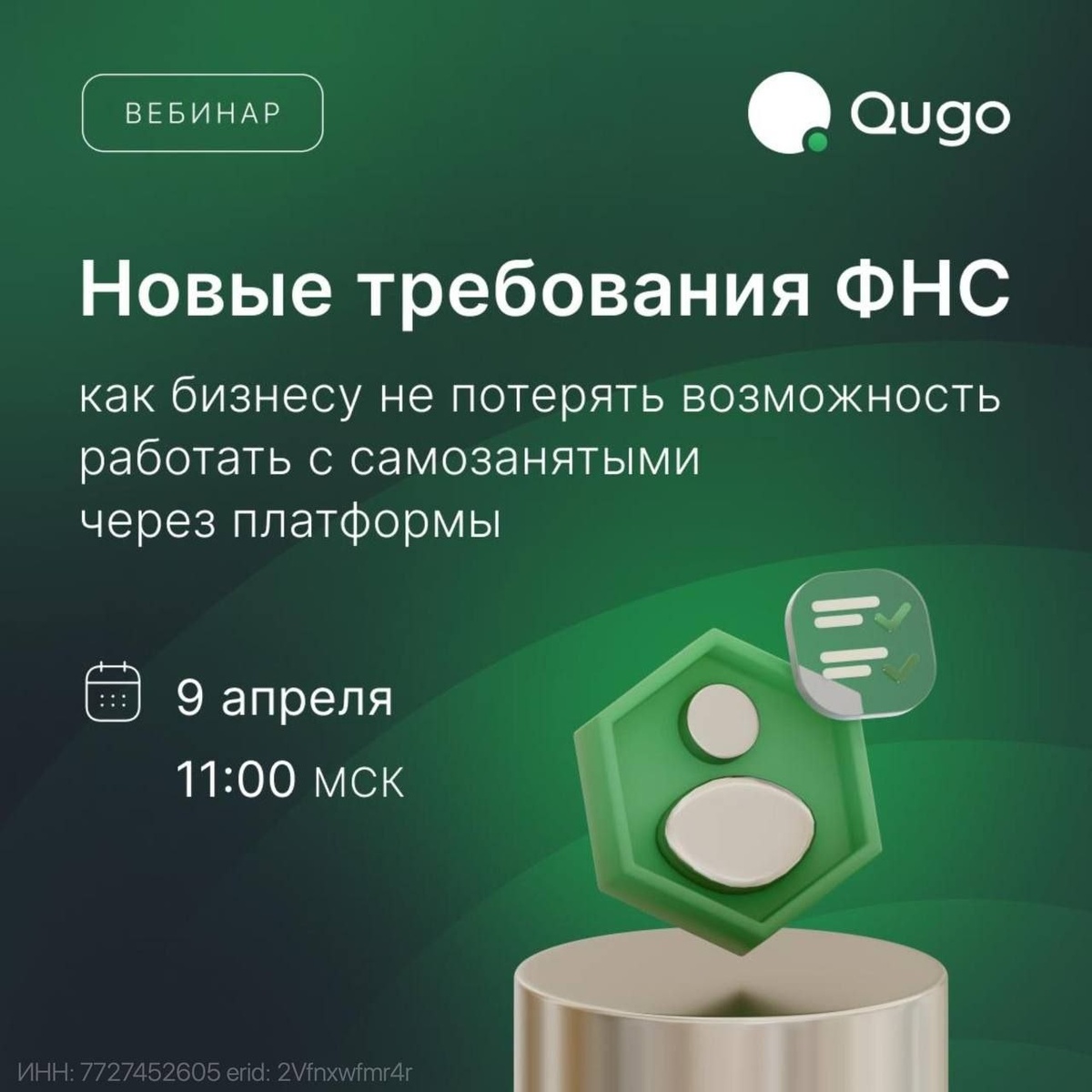 #онлайн 🗣«Новые требования ФНС: как бизнесу не потерять возможность работать с самозанятыми через платформы»🗣 Все мероприятия недели (с 6.04 по 12.04.2026) доступны по хештегу: #6апр_12апр26 ⏰ 11:00 💰 Бесплатно ❗️ Регистрация Два страшных сна любого ивентщика. Первый — подрядчик пропал. Вечером мероприятие, а ведущий, артист или техник не выходит на связь. А вот со вторым пока сталкивались не все. ✅ Речь про внимание со стороны ФНС к выплатам самозанятым. В сезон — это десятки и сотни выплат. Но всё ли вы делаете правильно? Одна ошибка может стоить очень дорого. Думаете, вас защищают выплаты самозанятым через платформу? Но в 2026 ФНС меняет правила — и под эти объёмы риски становятся заметнее. Теперь критично: • задания через платформу как обязательная часть работы (не «на словах») • запрет на выплаты третьим лицам — карта мамы больше не вариант Ошибки в этих зонах уже приводят к блокировкам, доначислениям и вопросам со стороны банков. В Qugo разобрали такие кейсы в ивент-