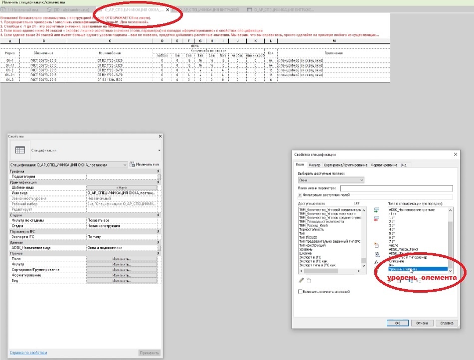 Я покажу, как за три шага создать спецификацию витражных окон, используя готовые наработки из обычной спецификации окон. Смотри видеоурок: На Rutube: https://rutube.ru/video/a5ded1cde1f1ed2c9f915e929532d11e/ Шаг 1. Переносим уровень из ведомости окон Прежде чем создавать новую спецификацию для витражей, нужно убедиться, что у нас есть правильный параметр «Уровень». В Revit каждый экземпляр окна «знает», на каком уровне он находится (это системный параметр). Но в спецификации по умолчанию этот параметр, может быть, не добавлен. Шаг 2. Копируем формулу из спецификации окон, привязанную к этажу Очень важный момент. В спецификации окон часто используется вычисляемый параметр с формулой, которая вычисляет отметку низа окна или другую характеристику в зависимости от уровня. Для витражных окон такая формула критична, потому что витражи часто имеют разную высоту на разных этажах, а в спецификации нужно указать абсолютные отметки. Шаг 3. Создаём новую спецификацию, которая сортирует Теперь у н
