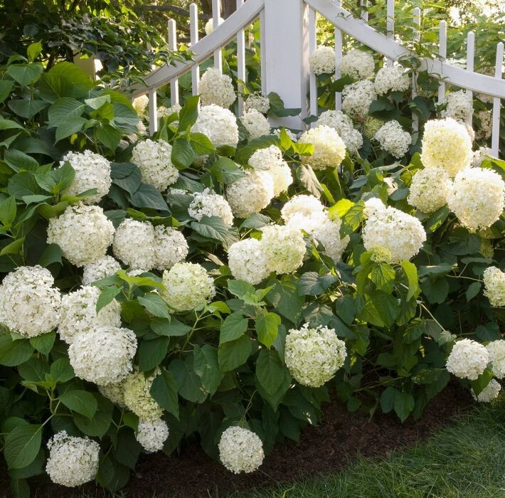 Много лет на моём участке растёт гортензия белая древовидная. Многие почему-то считают её капризной и сложной в выращивании, требующей постоянного внимания и ухода. Возможно речь идёт о каких-то экзотических сортах, которых сейчас полным полно и в магазинах и на маркетплейсах. Но я бы хотела рассказать о своей гортензии, которая растёт у меня много лет на одном месте. Красивейшее растение, которое непрерывно цветёт практически всё лето и не требует какого-то особого внимания к себе. Посадила я её совсем маленьким отростком, аккуратно поливала, ухаживала, но только до той поры, пока она не взялась за силу. После этого она активно пошла в рост и вокруг неё стали появляться новые отросшие кустики. Теперь ей примерно около 20 лет. Она сильно разраслась в ширину. Поэтому те, кто хочет посадить на своём участке гортензию, должны учитывать этот факт. Поливаю свою гортензию редко. Только когда засушливое лето, то приходится поливать её почаще. Зимостойкость прекрасная. Ещё ни разу не п
