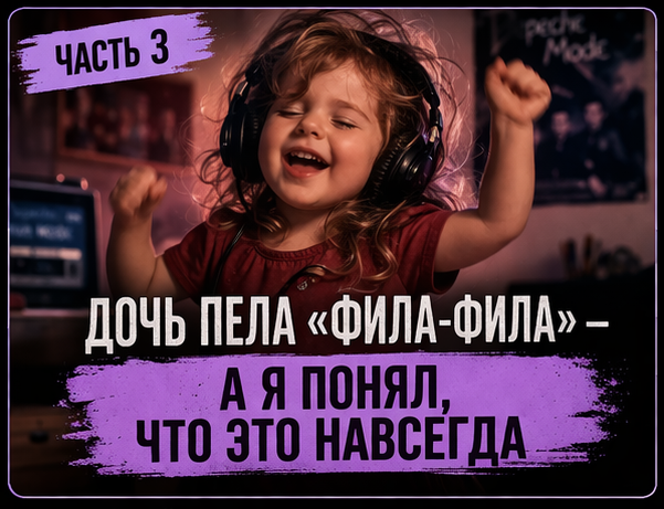 С 7 до 8 утра мы крутили старую танцевальную музыку: Arabesque, Boney M, Gazebo и т.п. Начальство строго следило за форматом. Поставил музыку не с того CD — нагоняй. Руки чесались непрестанно. И была на "разрешенных" дисках одна песня Depeche Mode, которую я мог ставить абсолютно законно, не боясь нагоняя — Photographic 1981 года. А другим ведущим она казалась неформатной. Так появился мой “профессиональный почерк”. Если в эфире играла Photographic, слушатели знали — за пультом сегодня “этот белобрысый”. Но Depeche Mode — это не только работа. Это ещё и очень личные, и домашние моменты. Помню, как после выхода альбома Exciter я до дыр засматривал клип Freelove. Эти катящиеся апельсины — какая-то загадочная, гипнотическая простота, от которой невозможно оторваться. А рядом происходило нечто ещё более важное. Моя трёхлетняя дочь в это время прыгала по кровати и во весь голос подпевала: — «ФИЛА! ФИЛА!» Это был е