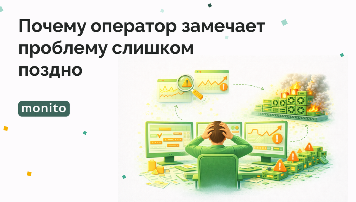 Это ограничение человека. Оператор не может: В какой-то момент внимание начинает «фильтровать» информацию. И первыми отсекаются как раз слабые сигналы. Пока инфраструктура небольшая, многое действительно можно контролировать вручную. Но с ростом: И в какой-то момент происходит перелом: человек больше не способен видеть систему целиком. Он видит только фрагменты. Ситуа