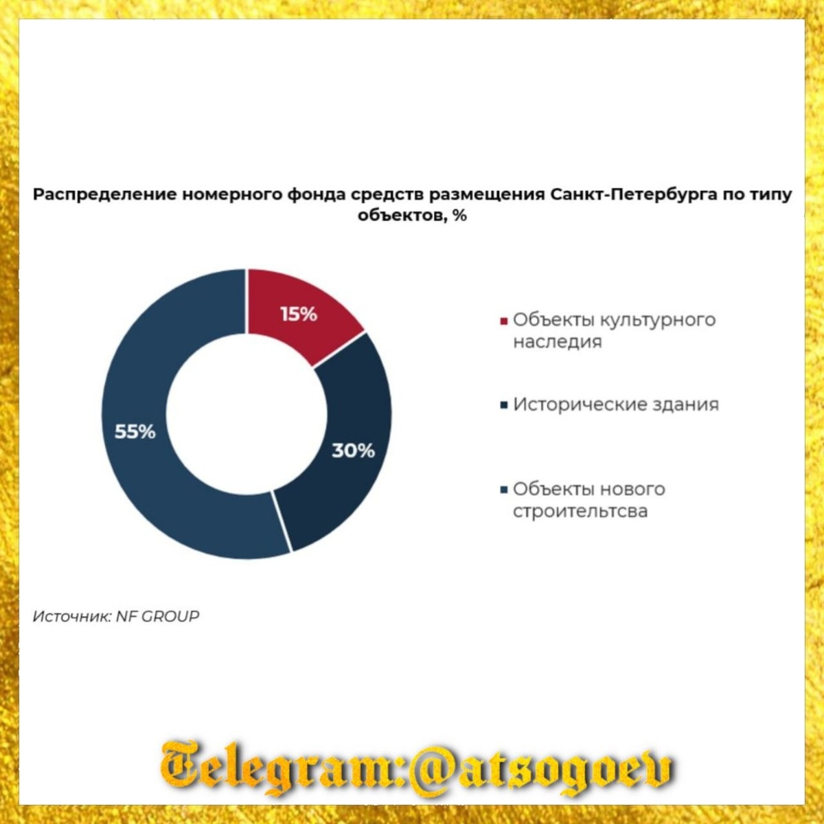 недавно построенный современный отель. Интрига: ответ в конце поста. 🏨 По данным NF GROUP, на конец I квартала 2026 года почти половина качественного номерного фонда туристической столицы России, Санкт-Петербурга (45%) расположена в исторических зданиях. Из них 30% - в исторических постройках без охранного статуса, 15% - в объектах культурного наследия (ОКН). Всего в городе работают 185 гостиниц и апарт-отелей на 25 тыс. номеров. 📊 Структура предложения в ОКН выглядит так: 52% номеров - это объекты категории 5*, ещё 36% - категория 4*. Классические гостиницы занимают 89% фонда в памятниках, апарт-отели - оставшиеся 11%. Географически всё это сосредоточено в Центральном (46%) и Адмиралтейском (40%) районах - то есть ровно там, где турист и хочет оказаться. 🏗️ В I квартале 2026 года рынок пополнился двумя объектами: Miles by Avenue Apart на 87 номеров в Адмиралтейском районе (ОКН, 4*) и очередной Port Comfort на 50 номеров в Центральном (историческое здание, 3*). До конца года ждё