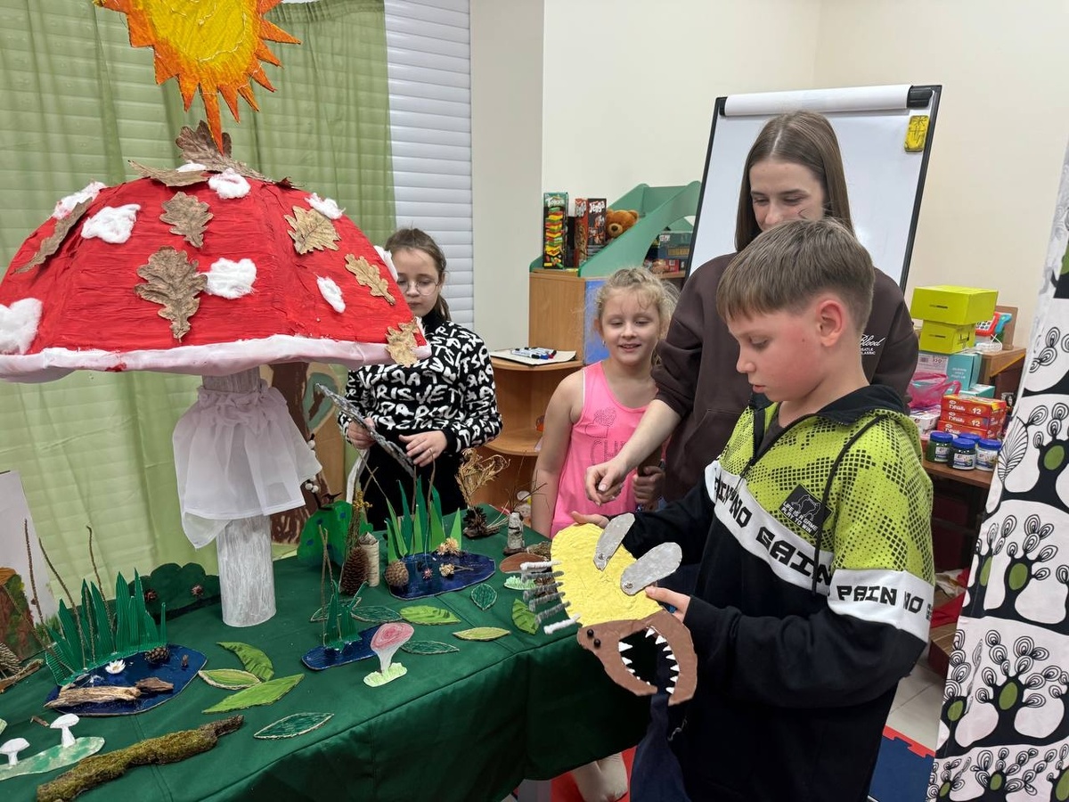 Вместе делали и декорации. Зонтик стал каркасом для гриба: его обклеили малярным скотчем, а потом все вместе раскрашивали гуашью в красный цвет с белыми крапинками – получился мухомор. Каждый добавил что-то своё: одни рисовали кружочки, другие мастерили кустики, третьи – лужи. Ребята учились проявлять фантазию, реализовывать свои таланты, а ещё справляться с трудностями, общаться и договариваться.