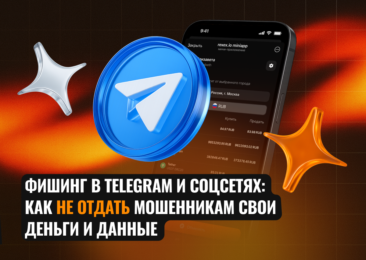 Telegram и мессенджеры стали одной из главных площадок для крипто-мошенников: поддельные аккаунты сервисов, фейковые боты, сайты-клоны и «менеджеры поддержки». Все это формы фишинга, цель которых одна: получить доступ к вашим деньгам и данным. В этом материале разберём самые популярные схемы обмана, признаки фишинга и правила безопасности, которые помогают сохранить активы. В этой статье разберём с командой rexex.io самые распространённые схемы фишинга в Telegram и соцсетях, реальные риски для владельцев криптовалюты и простые правила, которые помогают не потерять средства и данные. Самая частая причин потери криптовалюты — фишинг. Мошенники давят на эмоции: спешку, страх потерять деньги, желание получить выгоду или «вернуть зависшие средства». В Telegram и соцсетях это работает особенно эффективно: аккаунты легко подделываются, а пользователи привыкли быстро реагировать на личные сообщения. Если видите хотя бы один пункт — остановитесь: Ни один легальный сервис не запрашивает приватны