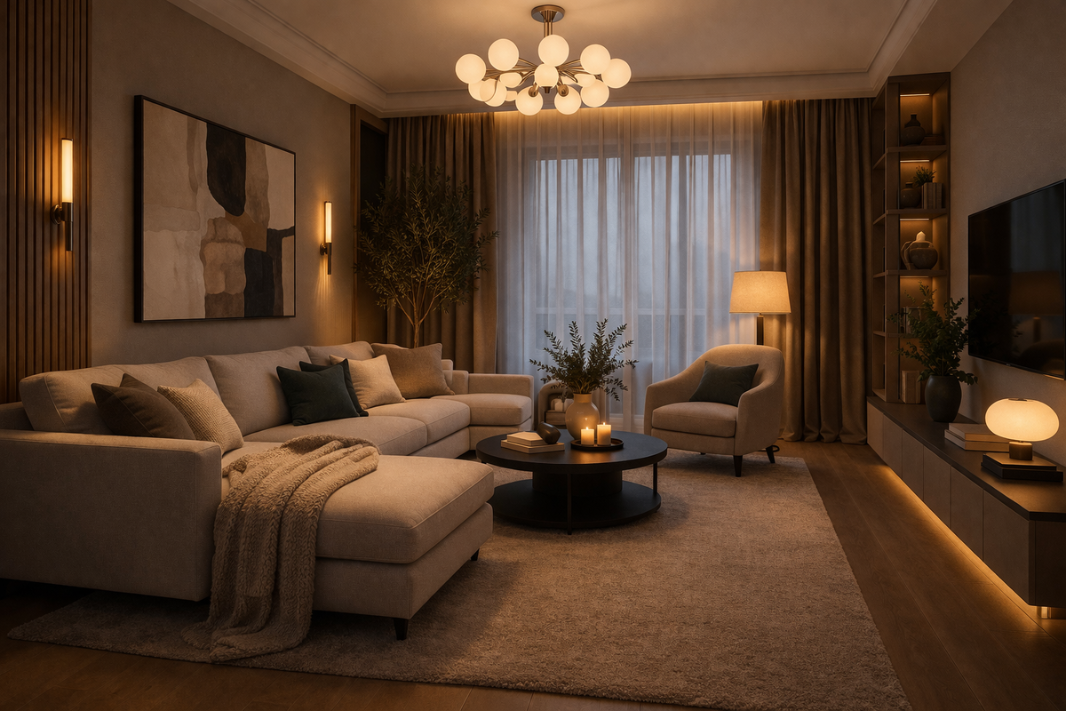 Бывает так: квартира выглядит безупречно – всё на своих местах, каждая деталь продумана. Но почему-то находиться в ней совсем не хочется. Нет того самого ощущения тепла, уюта и жизни. В чем же дело? Ответ прост: уют – это не про внешнюю "красоту" в вакууме. Это про ощущения. И часто именно несколько неочевидных моментов "убивают" атмосферу. 1. Свет: главный источник настроения (или его отсутствия) Самая распространенная ошибка – один-единственный яркий источник света, заливающий всю комнату сверху. Такой "плоский" свет делает пространство безжизненным: В итоге – есть комната, но нет атмосферы. Уют рождается там, где свет многослойный и разнообразный: Именно поэтому вечером у торшера или настольной лампы всегда уютнее, чем под яркой люстрой. 2. Текстиль: душа интерьера Текстиль – это то, что придает пространству мягкость и "оживляет" его. Без него даже самый дорогой интерьер может ощущаться холодным и неуютным: Добавьте текстиль, и комната преобразится: Пространство сразу же "собираетс