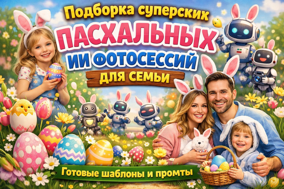 Подборка суперских пасхальных ИИ фотосессий для семьи - готовые шаблоны и промты