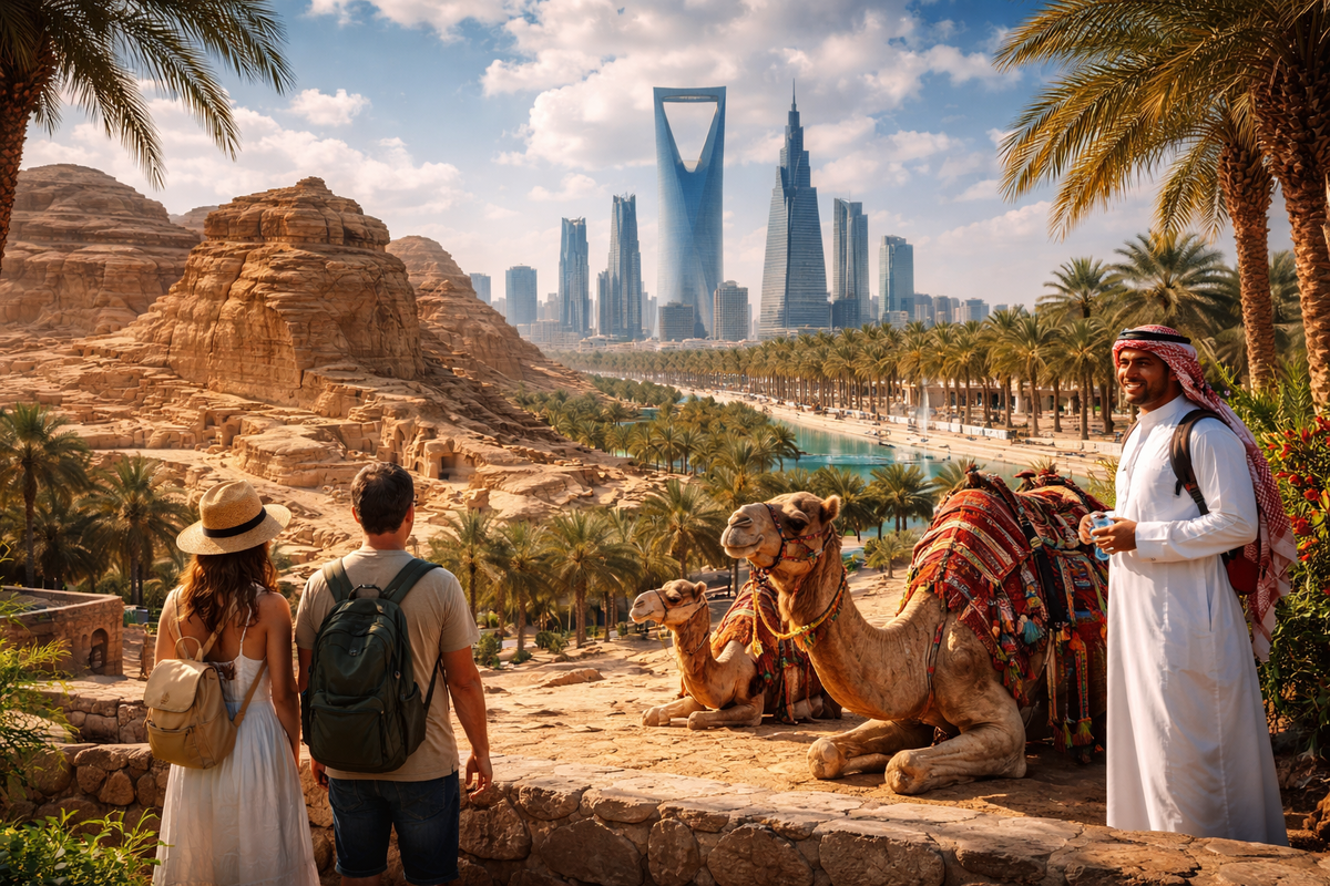 Потому что Саудовская Аравия отлично ложится на формат “не как у всех”. Это не банальная пляжная история и не страна одного города. Её можно показывать через древние руины, через пустыню, через дизайнерские отели, через Красное море, через исламскую архитектуру и через ощущение, что ты оказался не в типичном отпуске, а в очень дорогом документальном фильме.