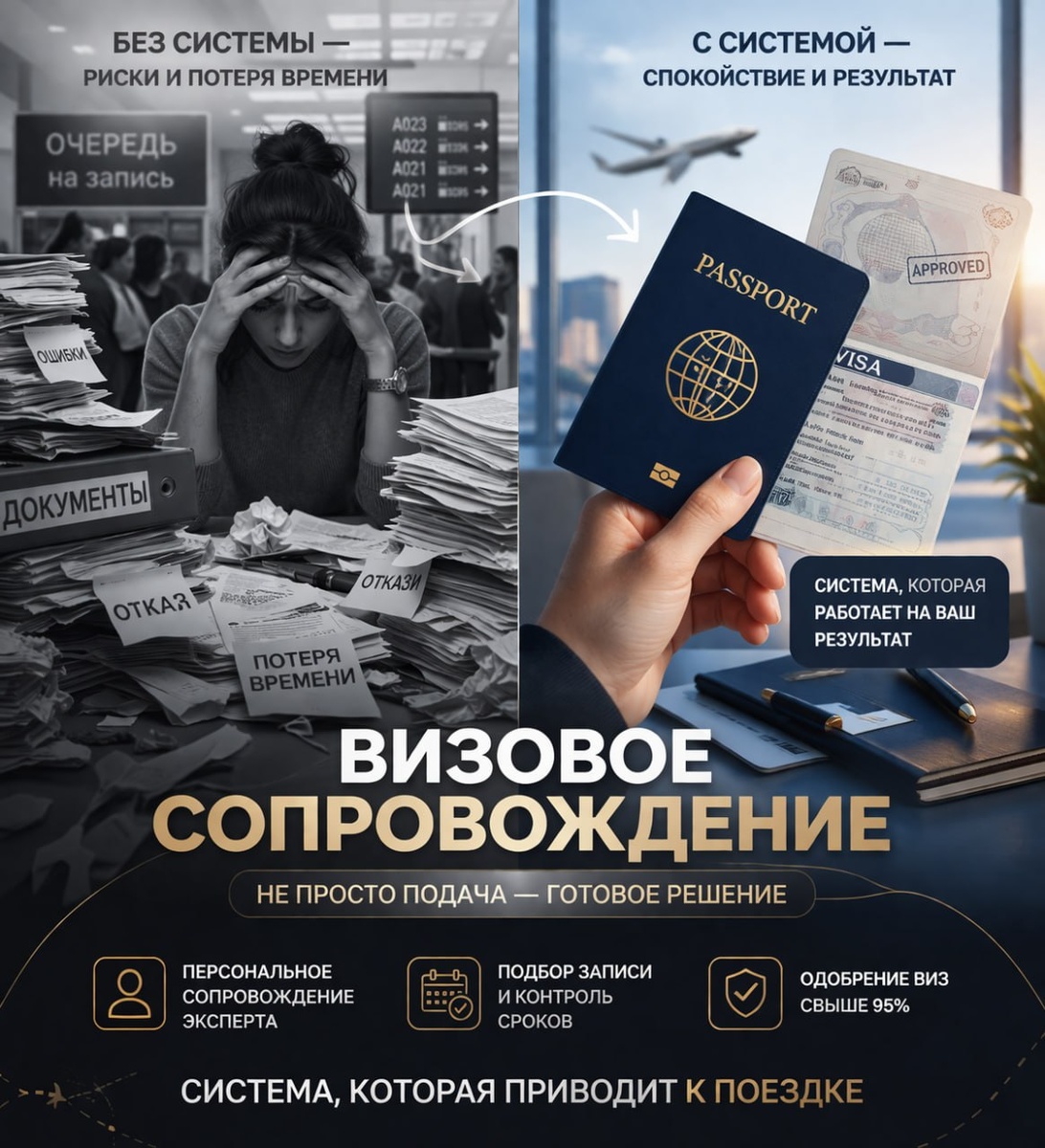 Для тех, кто ценит время и уверенность в результате. Что делаем: — Повышаем шанс одобрения за счёт точной диагностики рисков — Подбираем персональные условия под каждого клиента — Выстраиваем оптимальный маршрут оформления визы 📌 ТОП-3 сильных направления: — Запись в консульство / визовый центр — Сбор полного визового пакета без ошибок — Долгосрочное планирование визовой истории 🌟 Что получает клиент: — Готовое визовое решение «под ключ» — Персональное сопровождение эксперта — Подбор удобной даты и записи — Реальный показатель одобрения: 95%+ 🌙 Telegram: https://t.me/Homevisa_office 💻 Whatsapp: https://wa.me/+79959243765 ⭐️ MAX: https://clck.ru/3SDbvG 🏠 +7 995 924-37-65