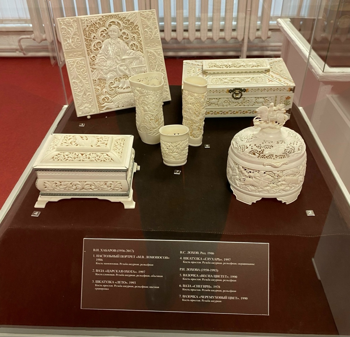 Работы из кости, слюдяной фонарь, зеркало царевны Софьи и сундук для казны