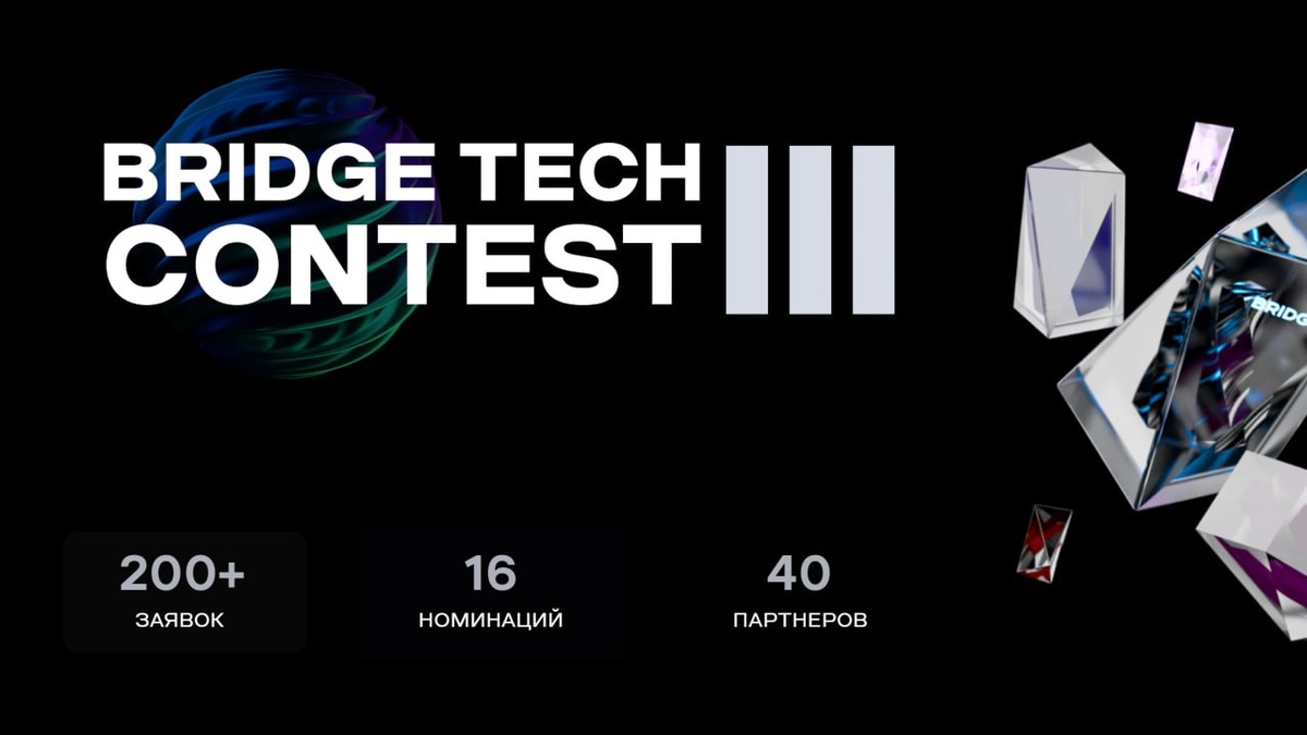 ! Если у вас есть стартап, молодая технологическая компания или вы сами чувствуете в себе силы побороться за награду — этот пост для вас. С 10 февраля по 20 апреля 2026 года открыт приём заявок на онлайн-конкурс BRIDGE TECH CONTEST III — для стартапов, разработчиков и технологических лидеров. Что даёт конкурс? 🔹 Поддержку инновационных проектов и команд 🔹 Развитие профессионального сообщества 🔹 Экспертную оценку и повышение узнаваемости 16 номинаций, среди которых: THE BEST IT STARTUP · THE BEST AI STARTUP · AI FOR BUSINESS · FINTECH PROJECT · EDTECH PROJECT · BLOCKCHAIN PRODUCT · AR / VR COMPANY · SOFTWARE 2026 · MADE IN RUSSIA · FOUNDER OF THE YEAR · MENTOR OF THE YEAR · AI DEVELOPER 2026 · TRENDSETTER 2026 · DEVELOPER OF THE YEAR · PRODUCT MANAGER (IT) · WEB DESIGNER 🏆 Призовой фонд — 3 000 000 рублей! Победители в каждой номинации получают: — 2 бизнес-билета на форум-выставку The Trends (осень 2026, Москва) — Электронный сертификат на 150 000 рублей (скидка на стенд / спо
