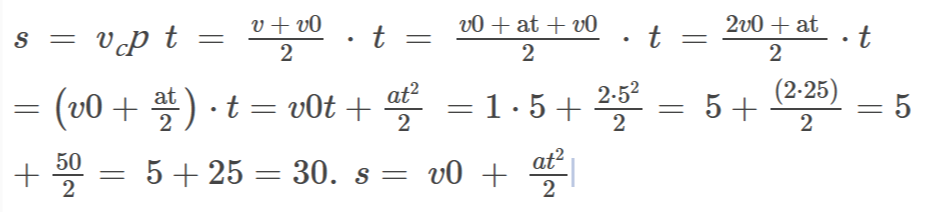 Но мы можем не знать конечной скорости, тогда выведем формулу пути без конечной скорости, подставив вместо v значения из формулы v = v0 + at: