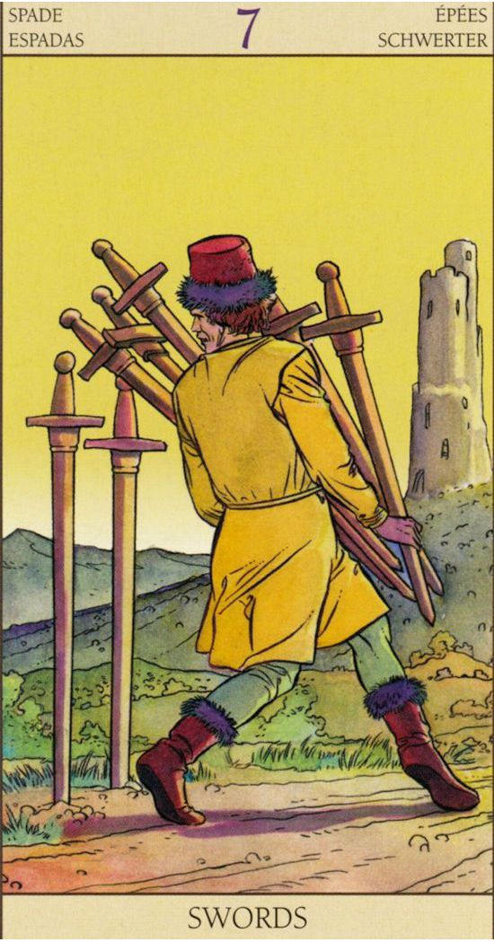 В худшем случае, за этим может стоять и антисоциальное расстройство личности, но я не ручаюсь за это и не утверждаю, что это именно так. В Семерке Мечей - это лишь потенциальная возможность для этого.