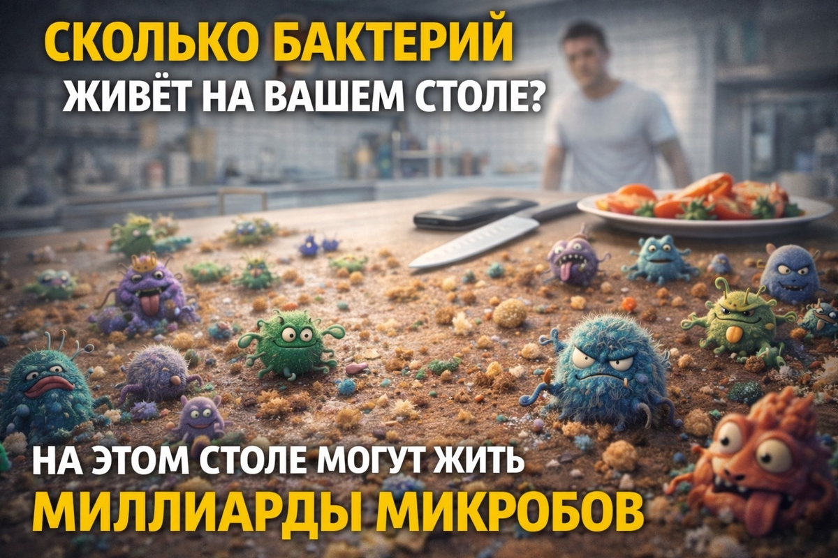 Кажется, что кухонный стол — одно из самых чистых мест в доме. Мы ведь регулярно его протираем, моем и стараемся поддерживать порядок. Но если бы можно было посмотреть на поверхность стола под мощным микроскопом, картина оказалась бы гораздо интереснее. На кухонном столе постоянно происходит настоящий микромир. Каждый раз, когда вы кладёте на стол продукты, пакеты из магазина, телефон, ключи или даже просто касаетесь поверхности руками, на ней остаются микроорганизмы. Бактерии попадают туда из воздуха, с одежды, с продуктов и с кожи человека. Учёные давно изучают бытовые поверхности и пришли к довольно неожиданному выводу: кухонный стол часто содержит тысячи и даже миллионы бактерий на каждом квадратном сантиметре. И это абсолютно нормально. Дело в том, что бактерии есть практически везде. Большинство из них безопасны и являются частью обычной микрофлоры окружающей среды. Но есть и другая сторона. Когда на стол попадают сырые продукты — например мясо, рыба или немытые овощи — количест