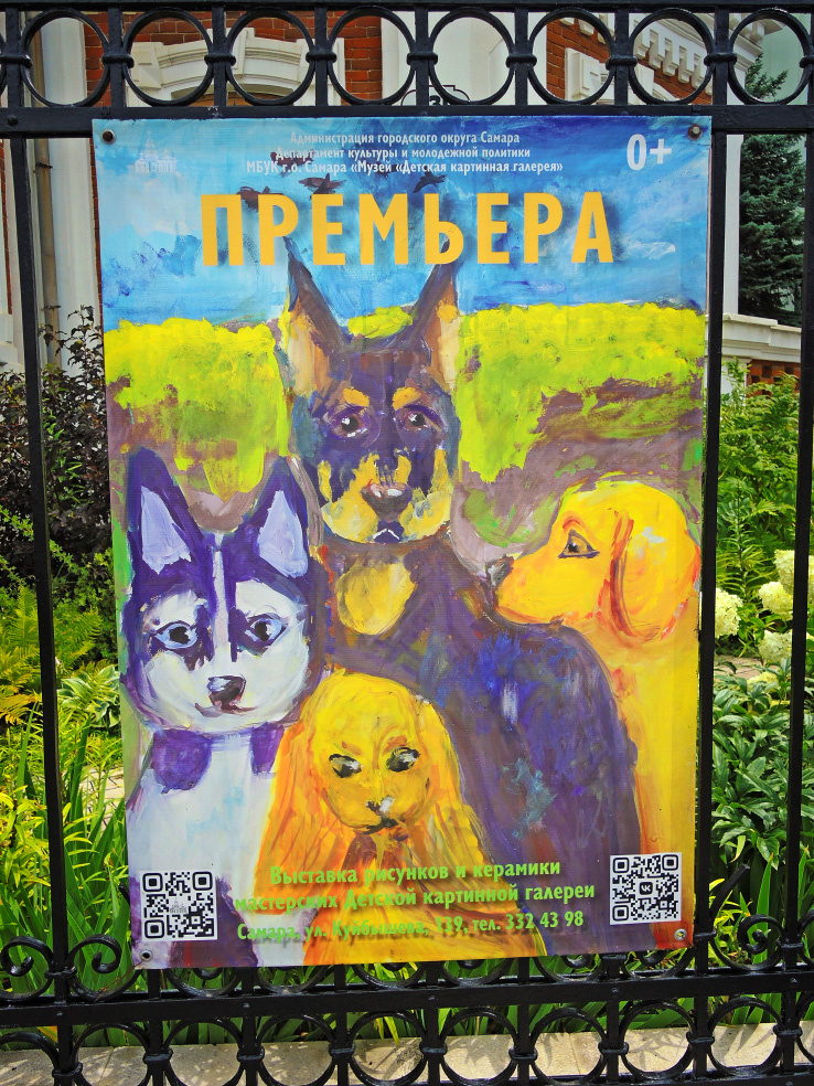 В рамках моих традиционных виртуальных походов по музеям по четвергам приглашаю вернуться в самарский музей Детская картинная галерея. Он работает в здании особняка Клодта на улице Куйбышева, дом 139. Я возвращаюсь к экспозиции сезона лето-осень 2025. В этот период в музее обычно представлены коллекции кукол мастерской Ольги Бакановой и подборки работ учеников других художественных мастерских на базе музея. Кукол я уже показал (рассказы об этих коллекциях можно найти по ссылке на общую подборку в конце статьи) и начал показывать детские работы. Ссылку на первую часть добавлю в конце статьи. Во второй части собрал рисунки. Начнём осмотр с коридора. Здесь, как обычно, собраны рисунки самых младших участников. Снимать не очень удобно - коридор узкий, рисунки под стеклом, которое бликует. Поэтому не всё получилось хорошо. Но как есть. Переходим к комнатам. Здесь рисунки уже посложнее. Появляются изделия из керамики, которые я покажу отдельно чуть позже. Съёмка в комнатах тоже осложняется б