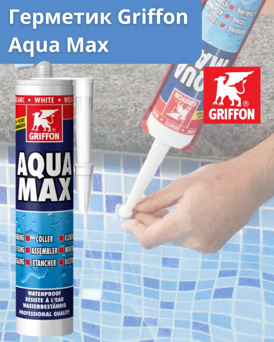 ! Griffon Aqua Max — это профессиональный водостойкий клей-герметик нового поколения на основе SMP-полимера, созданный для надежного монтажа и герметизации практически любых материалов и поверхностей. Идеально подходит для работ во влажных условиях и при контакте с водой. Почему выбирают Griffon Aqua Max 💧 100% водостойкий — отлично работает во влажной среде и можно работать непосредственно в воде 🔧 Клей и герметик 2-в-1 — подходит для монтажа, склеивания и герметизации 🧱 Супер универсальный — надежно соединяет большинство строительных материалов ⚡️ Высокая начальная фиксация — надежное схватывание и возможность корректировки 🌿 Без растворителей — безопасный и современный состав на SMP-полимере 🎯 Не требует грунтовки — можно наносить сразу на подготовленную поверхность Идеален для: ✔️строительства и ремонта бассейнов и прудов монтажа панелей, профилей и конструкций ✔️герметизации швов и стыков ✔️наружных и внутренних работ работ во влажных помещениях (бассейн, ванная, кухня, по