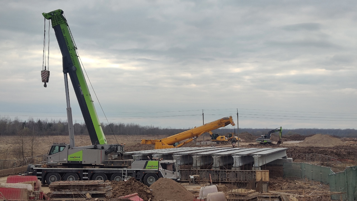 монтаж балок пролётного строения. Помимо этого, продолжается устройство