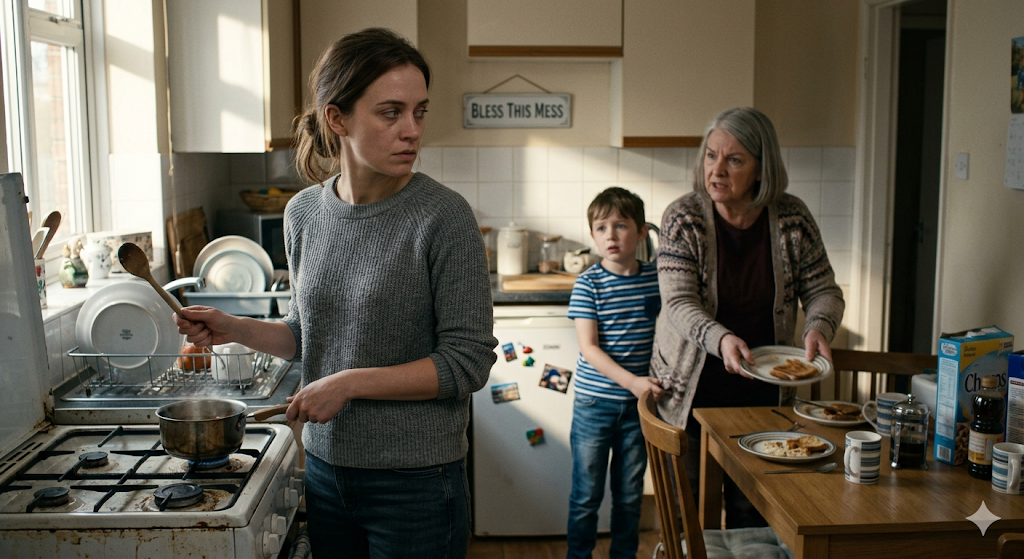 Каждое утро в этой квартире начиналось не с бодрого завтрака, а с невидимого сражения за право быть родителем. Людмила стояла у плиты, помешивая кашу, и чувствовала, как в затылок ей дышит глухое недовольство матери. Анна Тимофеевна жила в соседнем доме, но фактически поселилась в их жизни, оккупировав территорию под предлогом помощи единственной дочери. Помощь эта, однако, больше напоминала планомерный захват власти.
