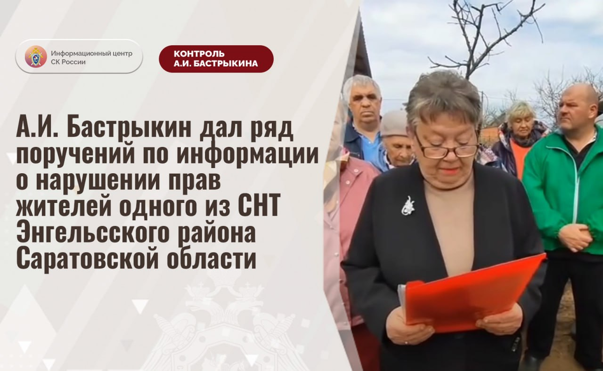А.И. Бастрыкин дал ряд поручений по информации о нарушении прав жителей одного из СНТ Энгельсского района Саратовской области