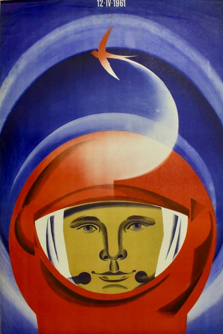 Неслучайно он нашел отражение и в советских космических плакатах 1960-х, соединивших авангардный драйв, искреннюю веру в прогресс и, конечно, ту самую «гагаринскую улыбку». Художники соревновались в том, как передать масштаб подвига: от лаконичных графических силуэтов до ярких, футуристических композиций.