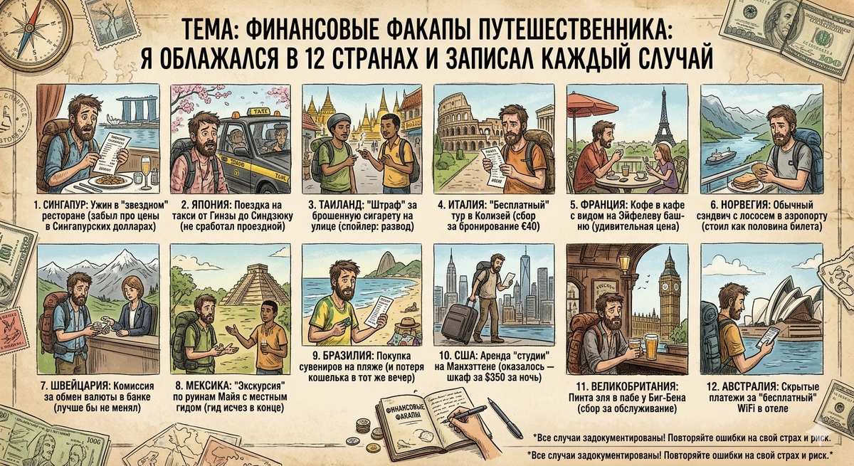 Потому что каждый лайфхак я открыл через личный финансовый провал. Я не умный путешественник который всё предусмотрел. Я человек который потерял достаточно денег чтобы наконец начать думать.