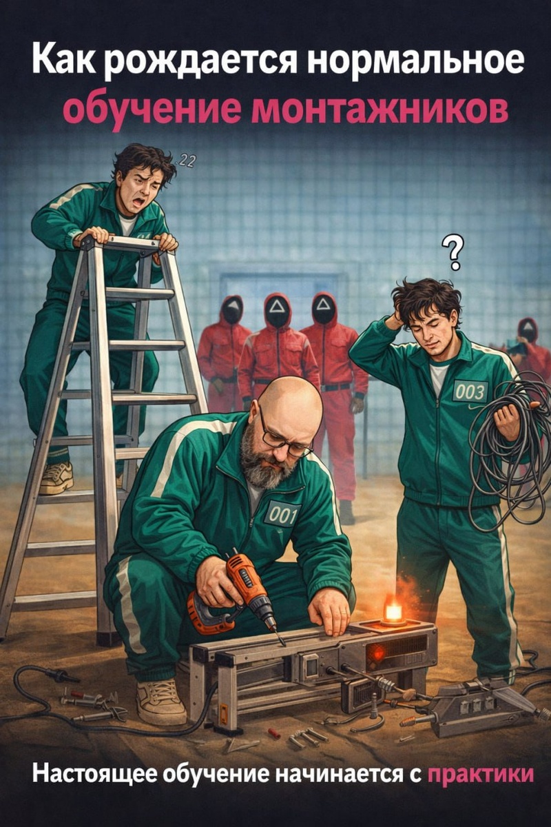 Сейчас собираем самую базу: нулевая и первая ступень. Новичок/младший монтажник. После встречи с теми, кто будет тестировать курс на себе, моих рассказов о том, для чего курс, зачем и почему, обсуждения требований и пожеланий я накидал первичный список требований: физика (вот прям про здоровье), базовая техника (не только безопасности, но и координация), поведение, обучаемость. Отправил то, что получилось в созданный общий чат - да, я стараюсь всеми способами вовлечь участников в процесс. И тут началось интересное... 🤌 Проблема не в знаниях протоколов, схем, оборудования. Пишут про поведение. Базовое рабочее поведение. 🤏 Монтажникам критически не хватает уверенности в коммуникации! "Шуруповерт он умеет держать, боится обратиться и просто стоит" Это прям фундаментальная проблема. Человек физически может работать. Но он не двигается, потому что не может: — подойти к заказчику/представителю — задать вопрос — попросить доступ — сообщить о проблеме Фактически это парализует раб
