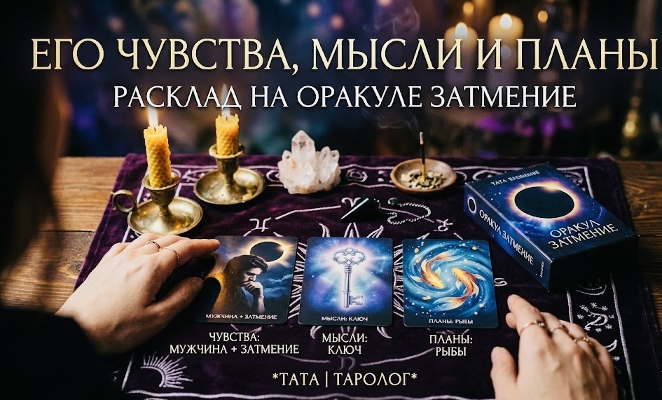 Здравствуйте, меня зовут Тата, я таролог. На этом канале я публикую общие расклады, они показывают тенденции и энергии, которые сейчас могут проявляться в вашей жизни. Важно понимать, что такие расклады откликаются у каждого по-разному, в зависимости от вашей ситуации и внутреннего состояния. Если вы чувствуете, что хотите разобраться глубже и получить точный ответ именно для себя, вы можете записаться ко мне на личную консультацию. Адрес моей почты находится в описании канала. А также я приглашаю Вас в мой Max 🤗. Мужская душа это часто тёмный лес. Снаружи, спокойствие. Внутри, целая вселенная, о которой он не говорит. Оракул Затмение позволяет включить там мощный прожектор и увидеть то, что он тщательно скрывает, даже от самого себя. Сегодня мы заглянем в самую глубину: что он прячет в сердце, какую роль вы играете в его голове и самое главное, перейдёт ли он от раздумий к делу? Этот расклад для тех, кто чувствует: между вами происходит что-то фатальное. Что-то, что невозможно игнори