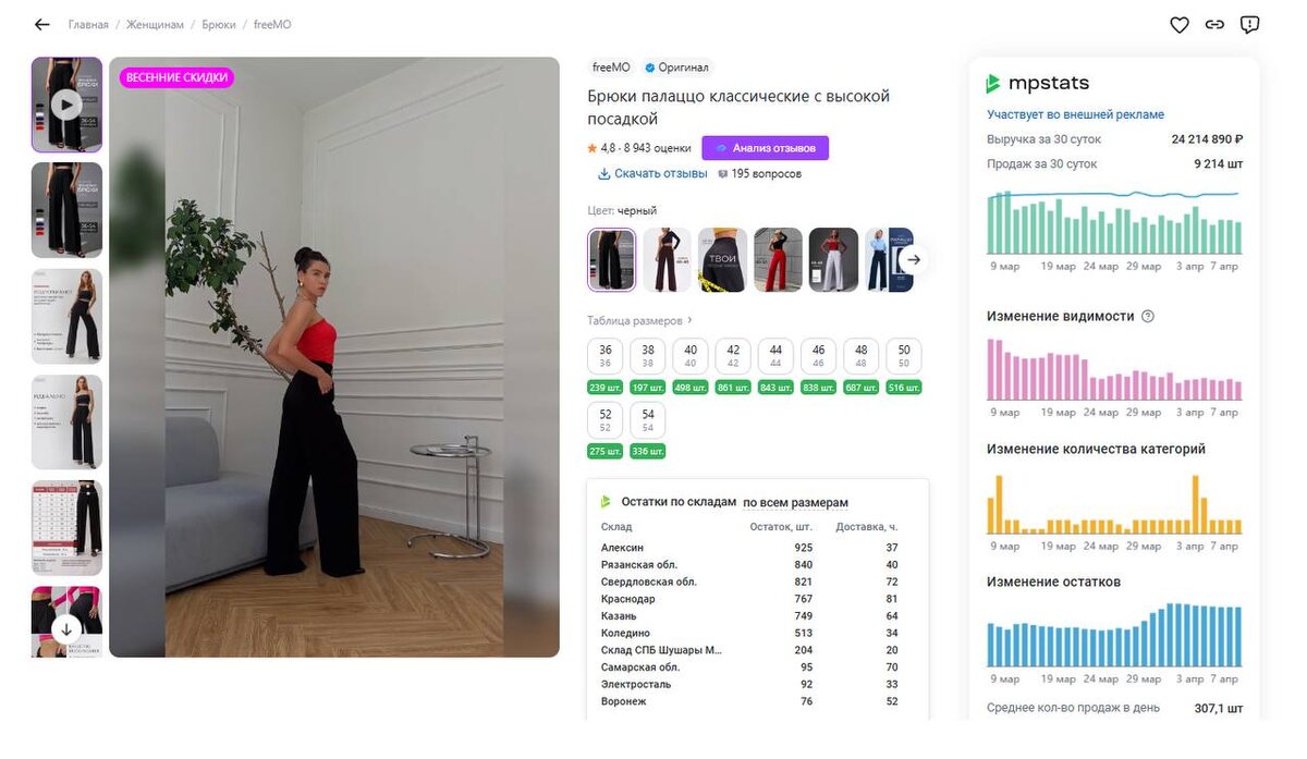Друзья, WB почему-то снова начал отдавать больше данных по остаткам на складах. Буквально недавно (сентябрь) он, наоборот, остатки скрыл. То есть начал показывать максимум 55 штук на размер-склад, хотя по факту там могло быть и 1000 штук, и больше. И понятно, что это по сути сделало невозможным нормальное отслеживание продаж по остаткам. Но. Недавно WB открыл остатки до 1 195 штук на размер-склад. А сегодня, мы уже видим до 2 612 штук на размер-склад. А это значит, что по сути мы снова видим почти все остатки у 95% товаров. Да, как видно на примере скрина, у конкретного товара в целом остатков может быть и больше, чем 2 612 штук по одному цвету-размеру. Но таких товаров с настолько большими остатками все-таки не так много. И вот тут реально становится интересно, ну мне вот интересно)) Почему WB решил вернуться к стратегии открытия остатков? Потому что, насколько я знаю, скрытие остатков было их осознанной стратегической задачей. Логика там была примерно такая. Крупные се