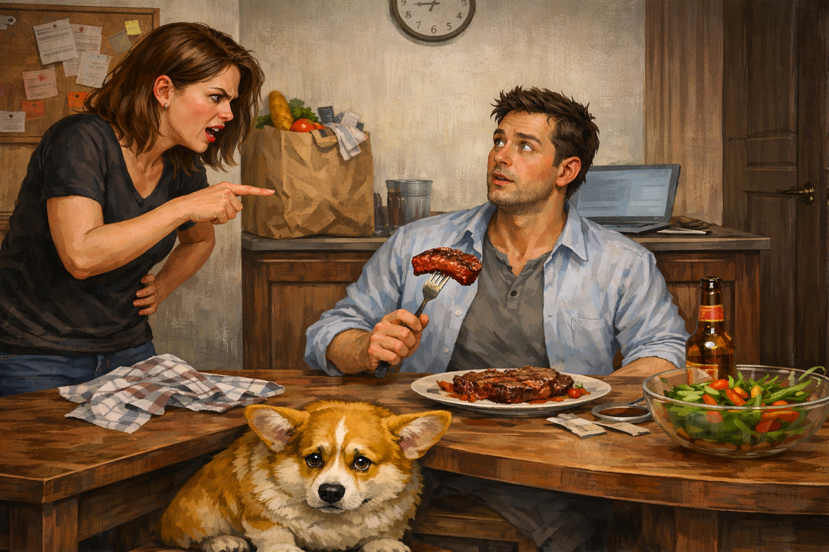 — Почему ты у меня постоянно ешь, Лёша? Езжай к маме, я тебе не бесплатный комбинат питания! — голос Ольги сорвался на высокой ноте, заставив рыжего корги Авоську испуганно втянуть голову в плечи.