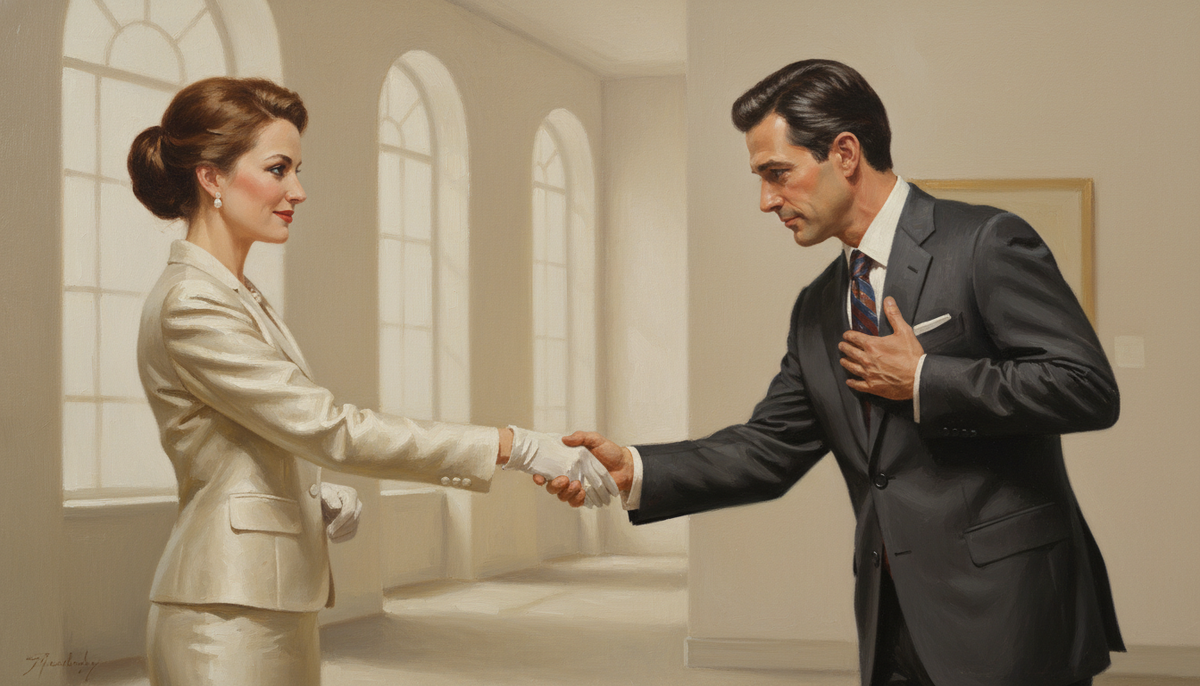 Есть один жест, который люди делают каждый день — и почти никогда не задумываются, что он говорит о них больше, чем любые слова. Обычное приветствие. Кто первым протянул руку. Кто чуть наклонил голову. Кто шагнул навстречу, а кто остался стоять. Казалось бы, мелочь. Но именно в этой мелочи — весь механизм социального считывания, который работает независимо от того, знаете вы о нём или нет. Светский этикет в этом смысле — не набор устаревших правил для аристократов. Это язык. И как любой язык, он либо говорит за вас то, что вы хотите сказать, — либо выдаёт то, чего вы скрыть не собирались. Начнём с того, что большинство понимает неправильно. Когда заходит речь о приоритете в приветствии, многие думают: первым здоровается тот, кто вежливее. Или тот, кто моложе. Или мужчина — потому что «так принято». Но это не совсем так. В светском этикете существует понятие символического приоритета. Не социального ранга, не возраста сами по себе — а положения в конкретном пространстве в конкретный мом