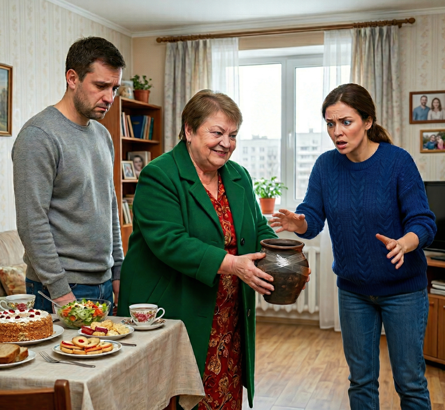 Она не стала здороваться. Сняла обувь, брезгливо отодвинула ногой кроссовки внука и прошла в комнату. В руках она держала старый, пузатый глиняный горшок для запекания. Крышка горшка была плотно, в несколько слоев, обмотана широким прозрачным скотчем.