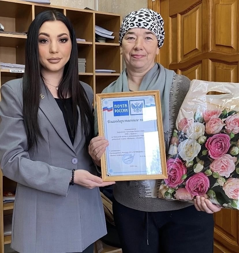 Руководитель «Буинск-Информ» Лилия Котельникова наградила почтальонов, внесших наибольший вклад в подписку на районные газеты “Байрак”, “Знамя” и “Ялав”.