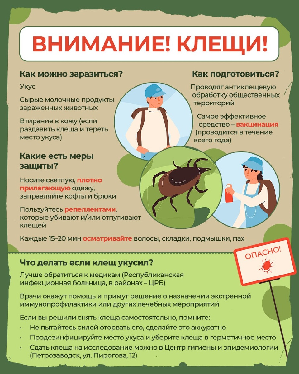Карелия – регион с высоким риском заражения клещевым энцефалитом и боррелиозом. Обе инфекции могут привести к тяжелым последствиям, если игнорировать простые правила безопасности. В памятке собрали главное, что нужно знать перед выходом на природу. Сохраняйте себе и береги здоровье!