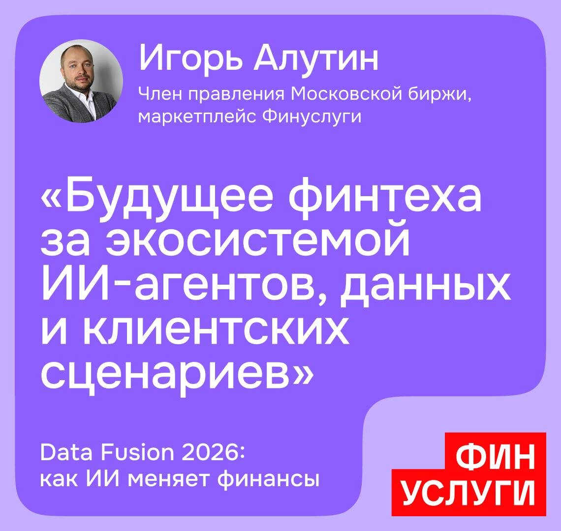 Сегодня утром Игорь Алутин – старший управляющий директор Мосбиржи по розничному бизнесу и маркетплейсу Финуслуги – рассказал своем видении будущего финансовых сервисов. Собрали самые важные тезисы его выступления. Эпоха агентской экономики Пользователь больше не кликает сам — за него это делают ИИ-агенты. Финуслуги перестают быть просто витриной и превращаются в умную инфраструктуру — и снаружи, и под капотом. Данные — новая нефть Для того, чтобы ИИ-агенты работали хорошо, им нужны качественные данные. Мы знаем, как собирать и обрабатывать данные так, чтобы они стали сверх-качественным топливом для ИИ. Финуслуги демократизируют инвестирование Понимают жизненный контекст и ситуации клиентов, помогают выбрать лучший финансовый продукт для их персональных целей и простым языком объясняют сложное. Покупки финпродуктов уходят в чаты Мессенджеры, как новая точка входа в интернет. Увидел рекомендацию — обсудил и купил прямо в чате. Без лишних шагов. Итог простой: будущее финансовых прод