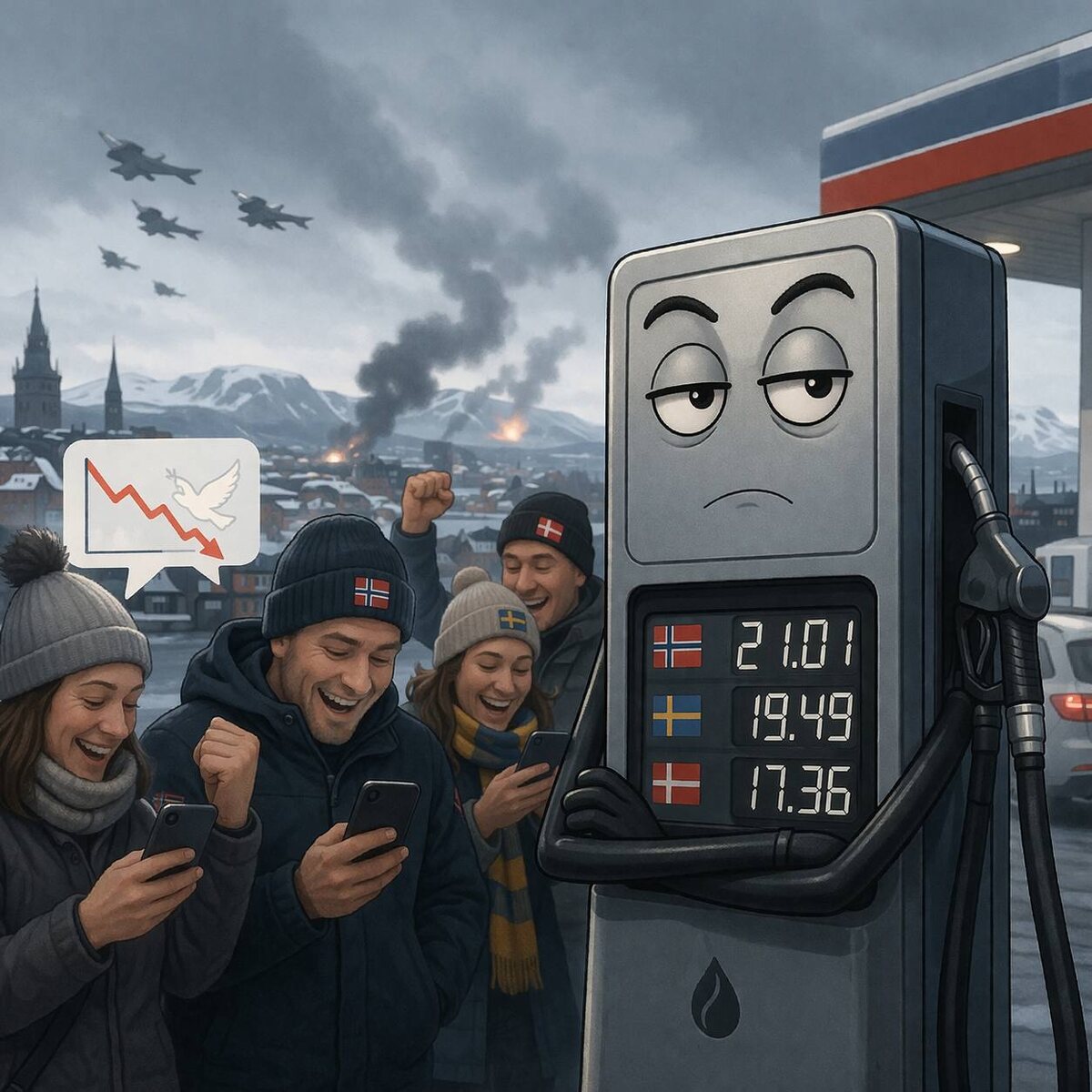🇩🇰🇸🇪🇳🇴 Скандинавия сегодня снова доказала, что умеет верить в лучшее — быстро, искренне и, желательно, до обеда. Утром все шло по плану оптимистов: заговорили о перемирии — цена на нефть поползла вниз, рынки вверх, эксперты с облегчением в голосе. На пару часов возникло ощущение, что человечество все-таки можно уговорить не разрушать само себя, если правильно подобрать формулировки. После обеда, как водится, реальность внесла правки без согласования: бомбардировки вернулись, “перемирие” оказалось чем-то вроде рекламной паузы между ударами, а рынки резко вспомнили, что у них память золотой рыбки, но тревожность — как у хронического невротика. Скандинавия при этом отреагировала идеально: сначала — выдохнули, потом — порадовались, потом — сделали вид, что всё под контролем. И только одна система отказалась участвовать в этом коллективном самовнушении — заправки. Потому что бензоколонка — существо циничное. Она не читает новости про перемирие. Она знает, что “снижение нефти» и «