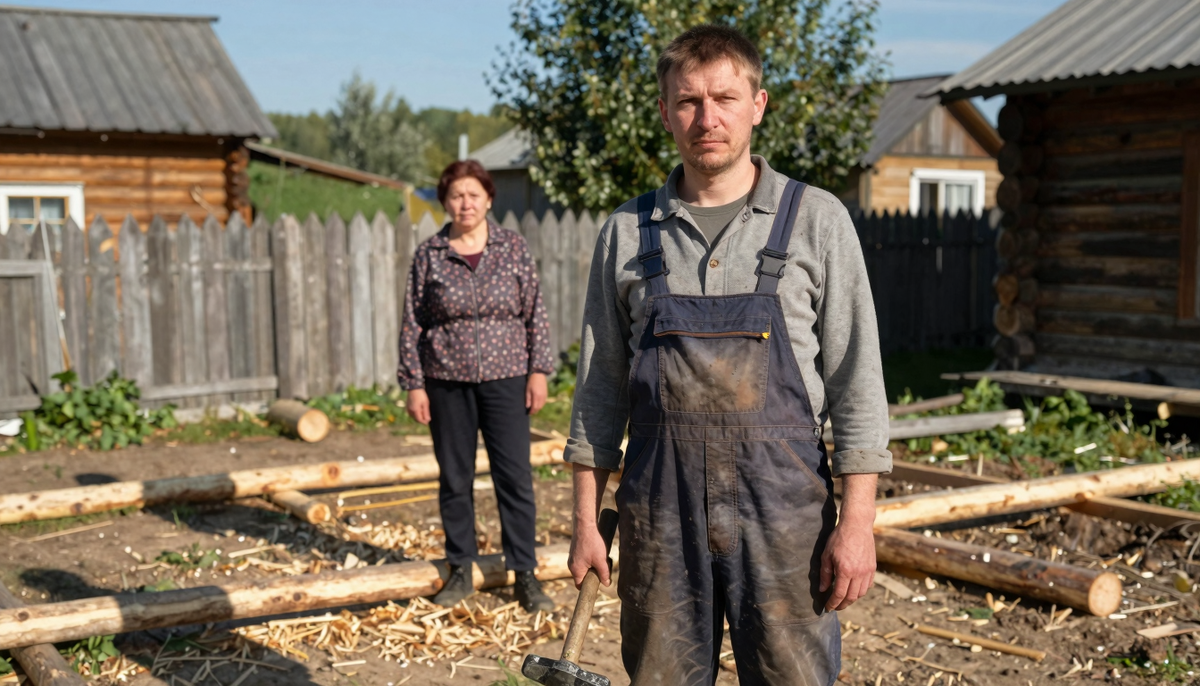 сегодня утром, до разговора с Колей. Брёвна ещё светлые,