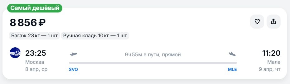 На Мальдивы за 8856 рублей