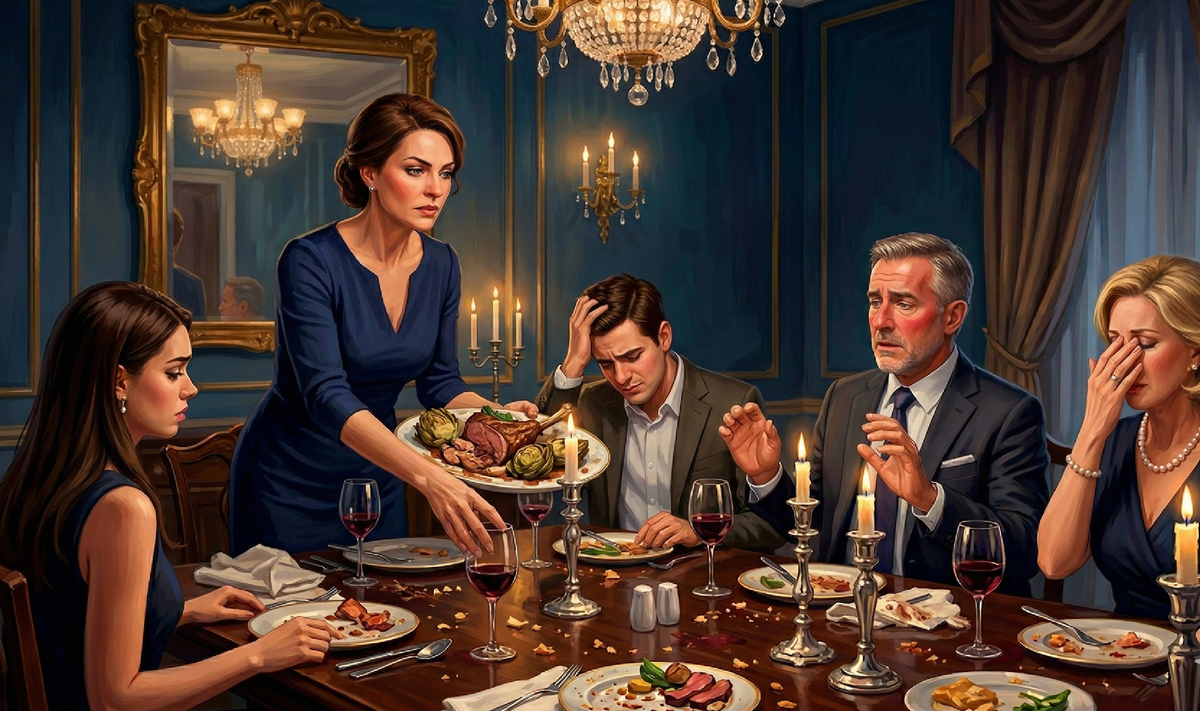 Первые полчаса прошли по сценарию. Комплименты интерьеру, вежливые кивки. Но стоило подать основное блюдо, как маски начали сползать.