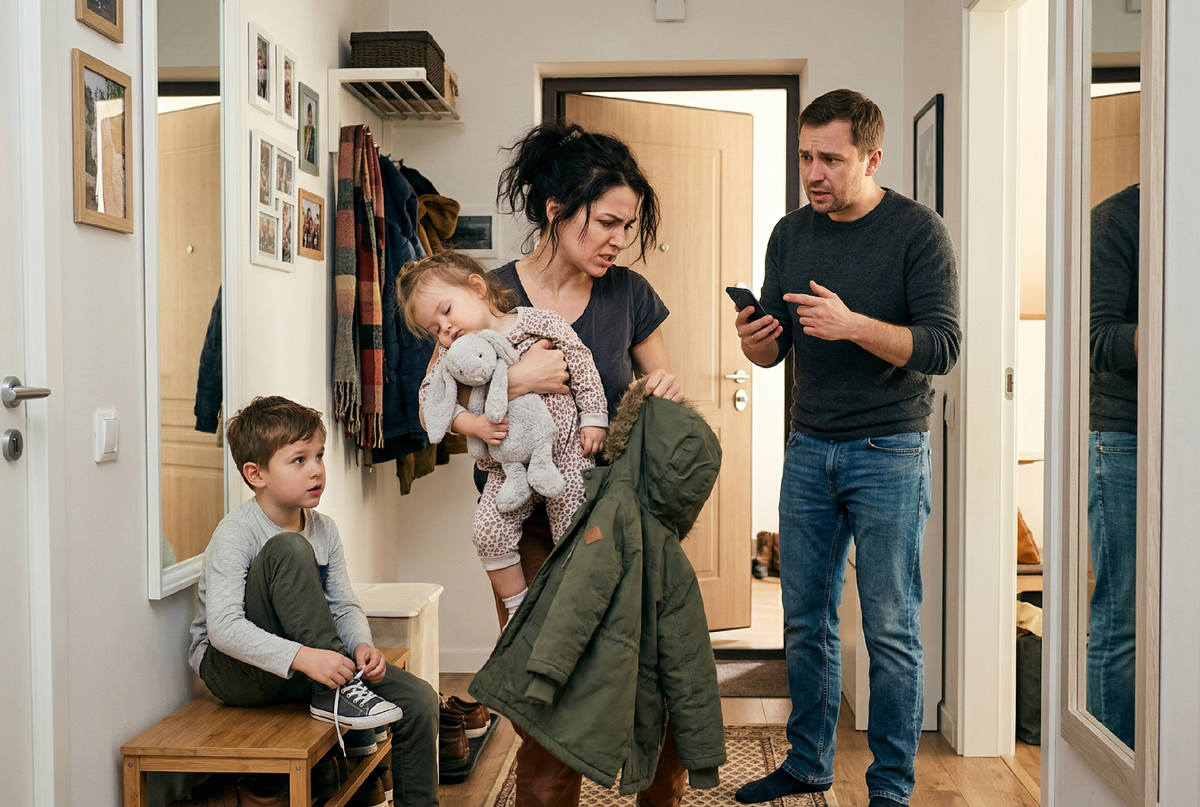 Семилетний Максим, почуяв неладное, послушно натянул кроссовки, а двухлетняя София лишь хлопала глазами, прижимая к себе облезлого плюшевого зайца. Маргарита действовала на автомате: сумка, ключи, детские куртки. Сердце колотилось где-то в горле.