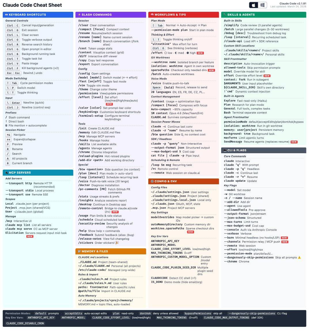 Шпаргалка по горячим клавишам, командам, агентам, настройкам и MCP-серверам для Claude Code