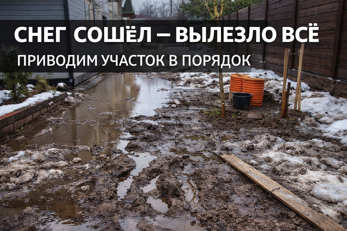 👉 ходить невозможно Вроде осенью всё было нормально. А весной смотришь — и понимаешь: 👉 “что-то мы сделали не так” У нас было так же. И вот что пришлось решать. Самое неприятное. Снег растаял — и: 👉 вода никуда не уходит Появляются лужи,