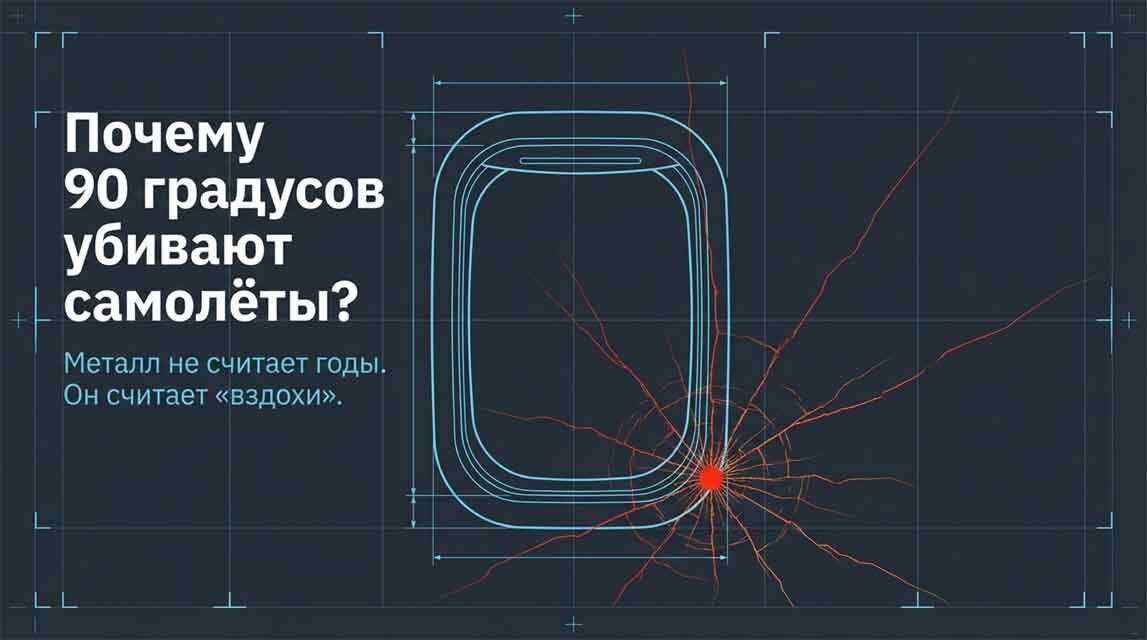 Геометрия углов превращает прочную деталь в точку разрыва. Именно поэтому в современной авиации вы не найдете ни одного острого угла на фюзеляже. Круг или овал позволяют напряжению плавно обтекать проем.
